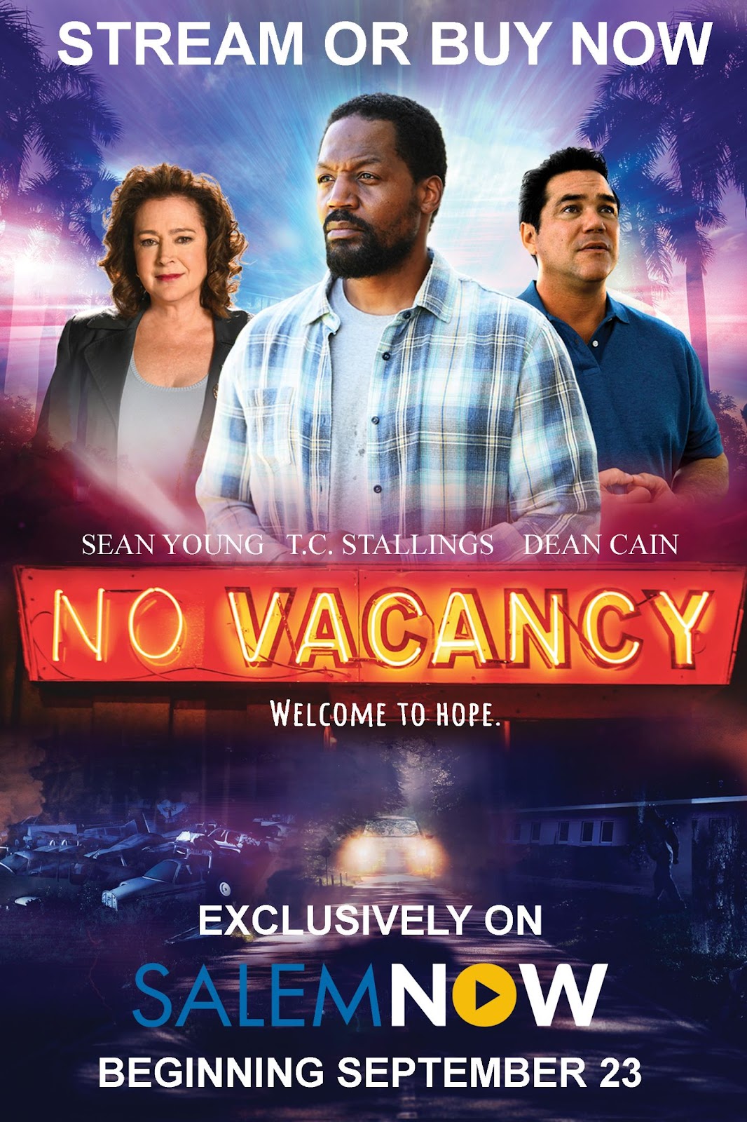 New faith-based film No Vacancy, starring Dean Cain, T.C. Stallings and Sean Young, will be streaming on SalemNOW beginning September 23. An inspirational motion picture for the whole family, and based on a true story, the film follows a jaded reporter who finds her cynicism slowly transformed when she covers a news story about a church struggling to purchase a motel for homeless families, befriending an addict in the process.